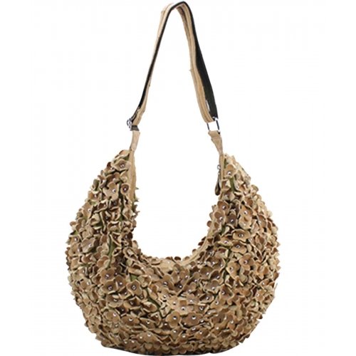 Genuine Leather Handbags Sudded Beaded Flower Purses Camel (Camel)